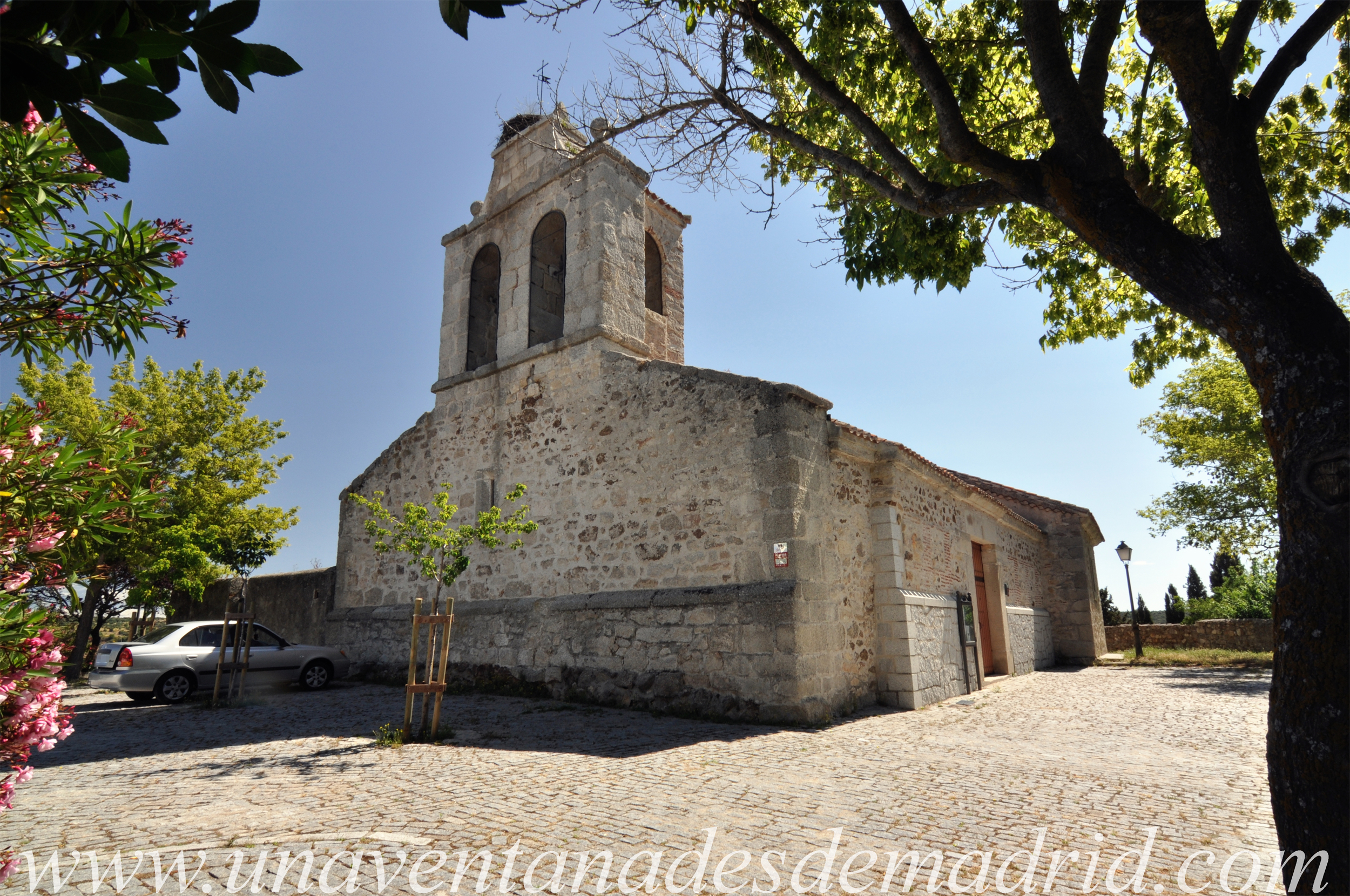 Este templo, estilísticamente del siglo XVII, tiene los muros levantados de mampostería55 con sillares57 de granito reforzando las esquinas, los dinteles61 y las jambas de la puerta de acceso, y las ventanas. En el paramento de la Epístola (el Sur)63, se observan varios tramos de aparejo65 a la toledana66.