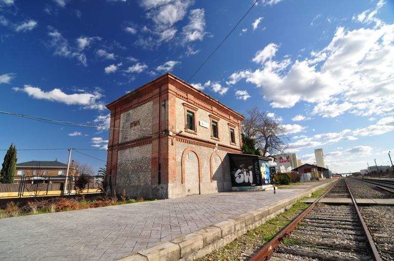 Antes de continuar con el casco urbano, nos acercaremos por la Avenida de Portugal a la antigua Estación de Ferrocarril de Griñón. Construida en el año 1913, era un apeadero de la línea férrea que unía Madrid con Valencia de Alcántara (Cáceres). Se trata de un conjunto de construcciones formado por el edificio de pasajeros, un muelle de mercancías y unos aseos. En la actualidad y aunque el tren sigue pasando por una de sus vías, este apeadero se encuentra cerrado desde la década de los 80 del pasado siglo XX y no presta servicio.