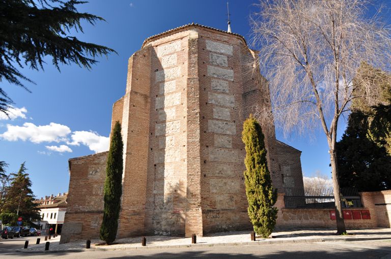 La actual Iglesia de Nuestra Señora de la Asunción fue construida en la segunda mitad del siglo XVI sobre el terreno en el que hubo una antigua ermita mudéjar11 probablemente del siglo anterior. De aquel primitivo estilo aún se pueden observar algunos rasgos en las fachadas y en la torre, como por ejemplo las seis ventanas mudéjares que se conservan en ella. Se cree que aquella ermita se derrumbó en el siglo XVI, reconstruyéndose después con materiales de peor calidad, lo que obligó a irla reparando en sucesivas ocasiones. Entre los años 1995 y 1997 se restauraron la torre, las fachadas, los tejados y el atrio. Del exterior, merece especial atención el impresionante ábside que vemos en la foto de abajo.