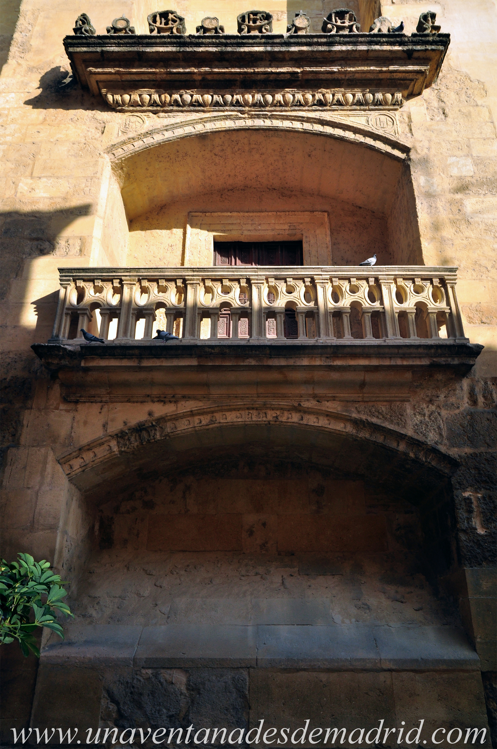 Decorada en piedra en un estilo entre el Renacimiento77 y el Gótico78, su autoría se la debemos al arquitecto Hernán Ruiz I, quien, entre los años 1510 y 1516, reformó también las arcadas de las galerías, por lo que pudieron coincidir ambas obras.