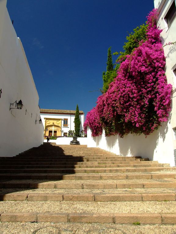 Otro de los rincones que destacan por su belleza en Córdoba es la famosa Cuesta del Bailío, una de las dos vías que, en época árabe, comunicaba la ciudad alta con la baja y que posteriormente aumentaron hasta cinco. La entrada y la salida se hacían por un arco que fue derribado en el año 1711, momento en que se ensancha la cuesta. Como nos cuenta Ramírez de Arellano en su "Paseos por Córdoba", cuando Fernando III conquista la ciudad en 1236, hizo un reparto de tierras y casas a aquellos que le habían sido fieles en la empresa; así, le otorgó a Don Bartolomé Corbacho la zona donde más tarde se levantarían la Iglesia y Convento de Capuchinos, en la vecina plaza del mismo nombre. De este modo, este acceso fue conocido como Portillo de Corbacho, adquiriendo después la denominación por la que hoy la conocemos cuando se hace con los terrenos y la casa que hay al final de la cuesta Pedro Núñez de Herrera, hijo natural de un hermano del Gran Capitán que había sido nombrado Bailío20. Desde entonces, dicho palacio será uno de los más famosos de Córdoba, siendo conocido como Casa del Bailío.