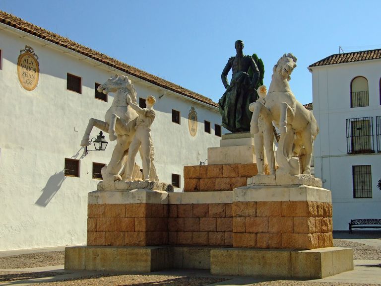 En la Plaza del Conde de Priego, se encuentra el Monumento a "Manolete", realizado por el escultor Fernández Laviada e inaugurado el 8 de mayo de 1956. Manuel Laureano Rodríguez Sánchez Manolete fue un célebre torero cordobés, cuarto Califa del Toreo18, nacido en la ciudad el 4 de julio de 1917 y muerto en Linares (Jaén) el 29 de agosto de 1947. Desde su alternativa19 el 2 de julio de 1936 hasta su mortal cogida del día 28 de agosto de 1947, su carrera profesional estuvo llena de éxitos tanto en España como en los cosos de Colombia, Méjico, Perú y Venezuela. Destacó su particular estilo de toreo, muy apreciado por el público, al enfrentarse al toro de perfil. El 28 de agosto de 1947 fue cogido por el toro de nombre Islero en la Plaza de Toros de Linares en el momento de ir a matar, falleciendo de dicha cogida durante la madrugada del día 29.