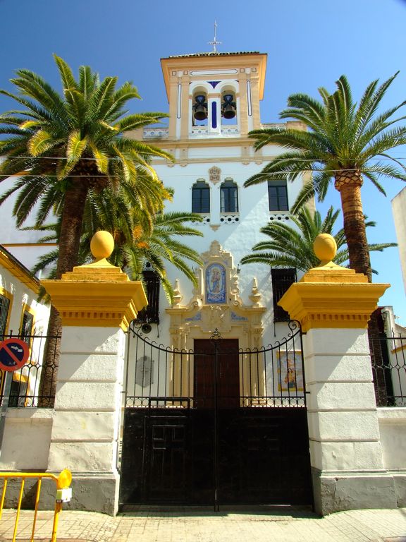 En cuanto a su estructura arquitectónica, se accede a su interior por un pequeño patio delantero donde encontraremos la fachada principal de la Iglesia, de estilo ecléctico8. Sobre la puerta, de aspecto neobarroco9, podemos contemplar un azulejo con la imagen de la Virgen, estando rematado el conjunto de la fachada por una espadaña que cuenta con dos pequeñas campanas.