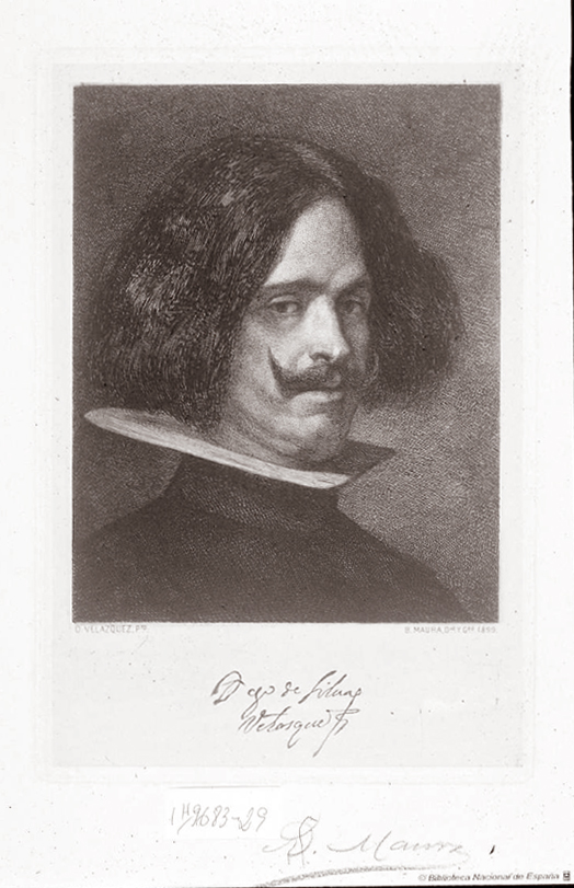 Grabado de Bartolomé Maura Montaner (1844-1926) del autorretrato de Diego Velázquez (1599-1660), Biblioteca Nacional.