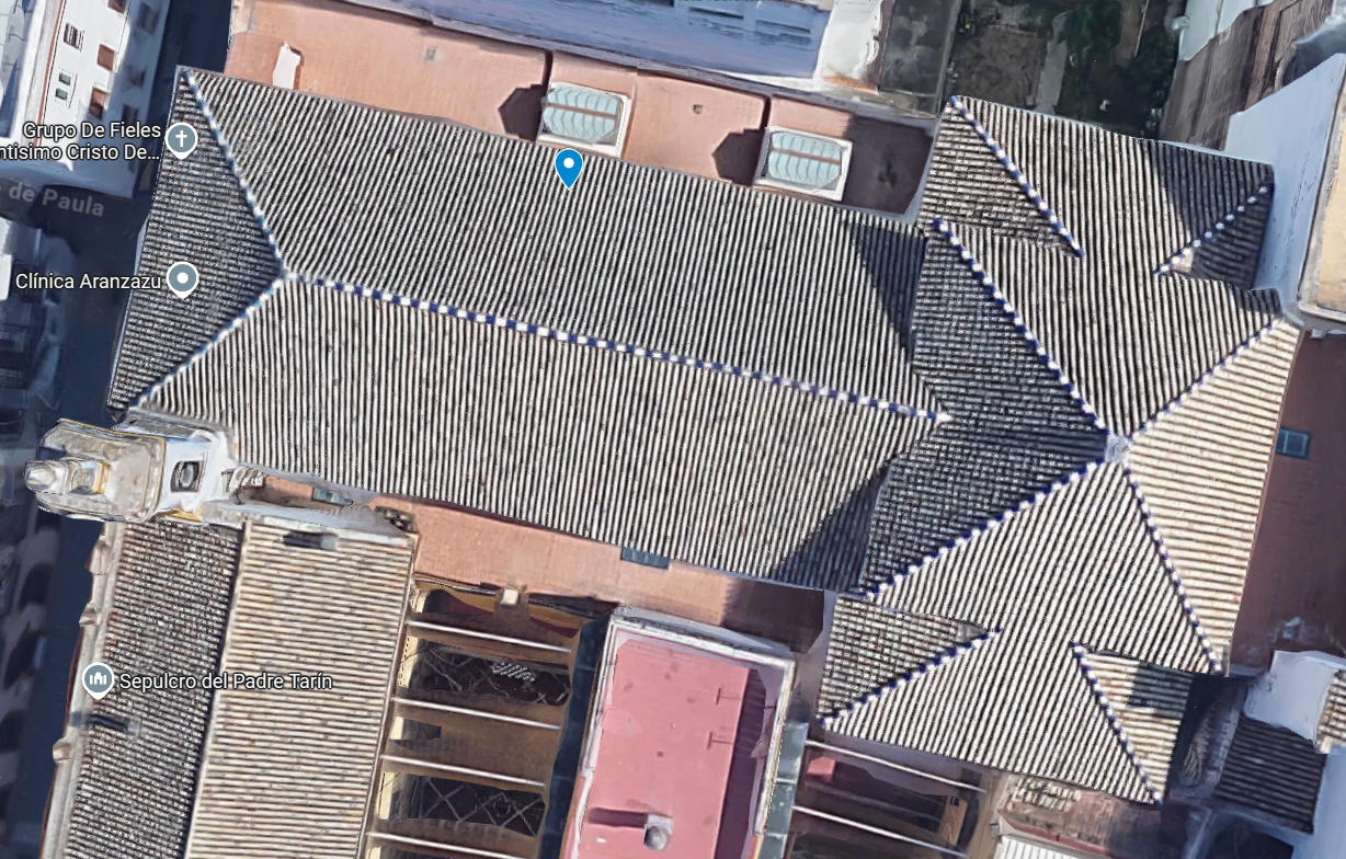 La Iglesia Colegial del Divino Salvador, el templo de mayores dimensiones de Sevilla tras la Catedral, se construyó entre los años 1674 y 1712 sobre una antigua mezquita. Es un templo de planta de salón68, tres naves y cubiertas de teja curva a distintas aguas: a cuatro en la nave principal, presbiterio y brazos del crucero; a un agua en las naves laterales; y a ocho tanto en la cúpula como en la linterna69 de ésta.
