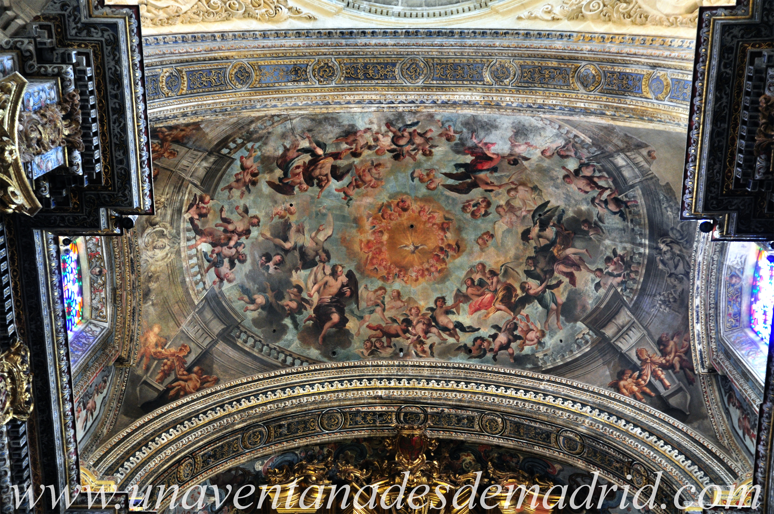 Pintura de la cubierta del presbiterio de la Iglesia del Divino Salvador representando la Gloria Celestial. Es una obra de Juan de Espinal del Siglo XVIII.