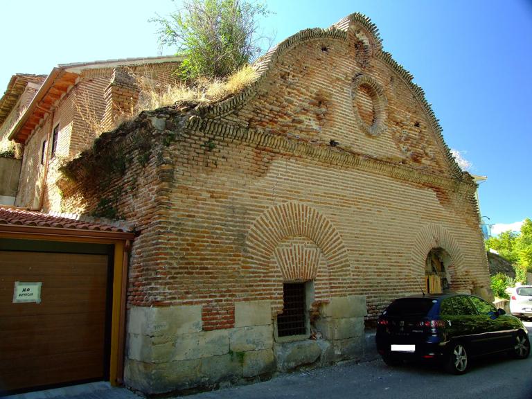 De la iglesia a la que pertenecía el ábside, las excavaciones han descubierto diversos restos de su nave, aunque no toda su estructura. Estaba construida con mampostería revestida de ladrillo tanto interior como exteriormente. Al ser materiales poco duraderos, ya en 1580, en las Relaciones de Felipe II, se menciona que se encontraba muy deteriorada. Lo que ha llegado a nuestros días es un ábside semicircular en cuya parte frontal, de forma recta, hay un gran arco de ladrillo apuntado26. La decoración externa consta de tres tramos de arcos ciegos superpuestos. En el interior, pasando por el arco delantero, vemos tres ventanas de medio punto con un arco en su parte interna, estando la del centro cegada y habiéndose encajado en ella una hornacina renacentista.