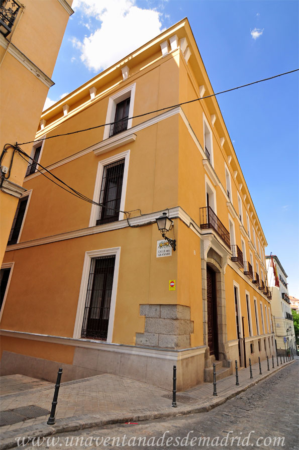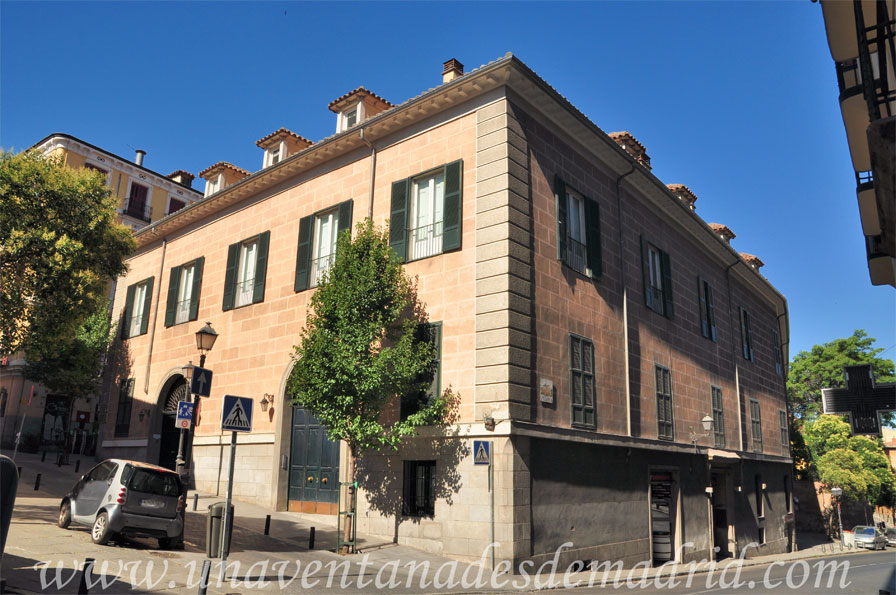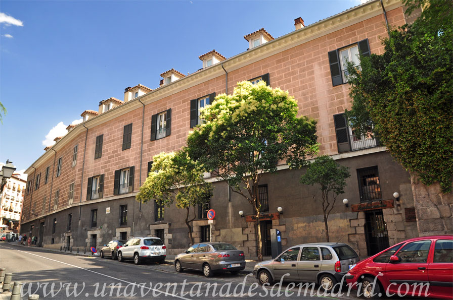 de la Guía de Arquitectura de Madrid, entre los años 1670 y 1710. El edificio es de planta cuadrangular, tiene dos alturas (contando la planta baja) y está cubierto por una azotea en su ángulo Suroeste y un tejado a dos aguas en el que se abren varias mansardas, de entre las que llama la atención, por su tamaño, la existente en el centro de la fachada de la Calle Mancebos. Las fachadas se encuentran revocadas, destacando en ellas, además de la entrada principal que vemos a continuación, la base del ángulo Noroeste, donde se han dejado sin revocar los sillares de piedra.
