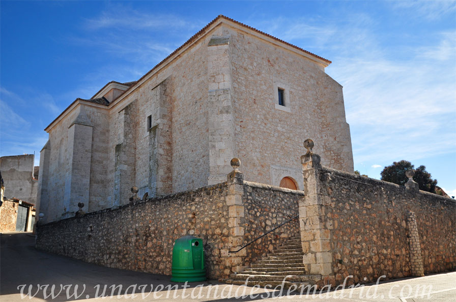 Una escalinata en esta misma plaza nos conduce a la Iglesia Parroquial de Nuestra Señora de la Estrella, la cual se alza en la parte más alta del pueblo, sobre una meseta artificial que queda cerrada por medio de muros de mampostería ornamentados por bolas herrerianas52. Su origen lo hallamos en el siglo XVI, momento en que sería rellenado el terreno que desciende hacia la plaza para salvar así el fuerte desnivel existente entre ambos espacios, si bien entonces ya existiría un templo primitivo, menor en tamaño que el actual y que ocuparía sólo el solar donde hoy vemos la cabecera.