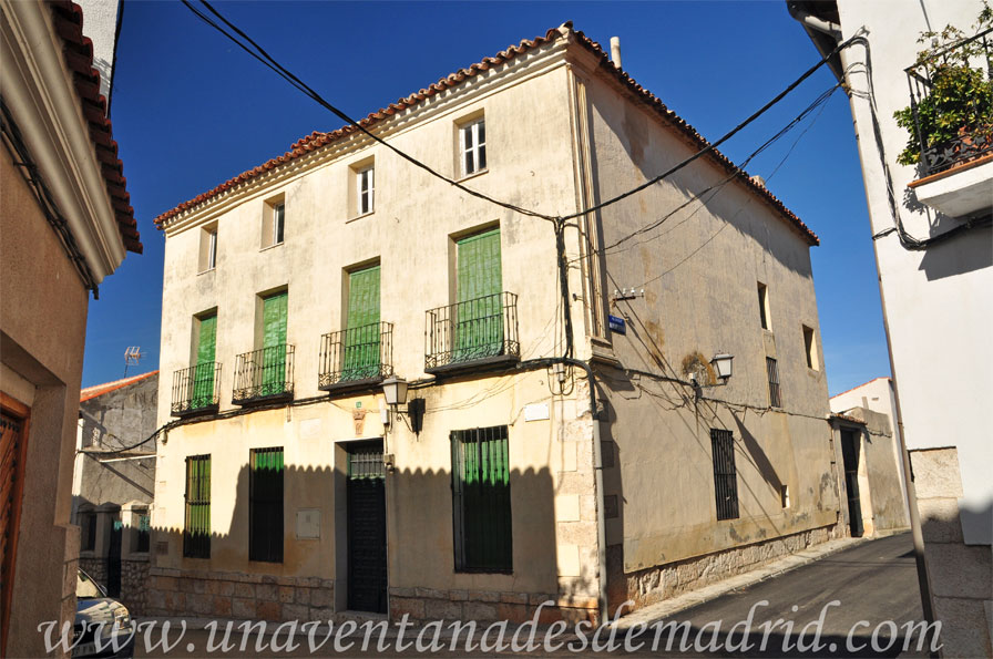 Se trata de un gran edificio exento de planta cuadrada que cuenta con tres pisos de altura y del que destaca la sobriedad de su fachada lateral, con una pilastra volada en la esquina como único elemento decorativo, en contraste con aquella en la que se abre la portada principal de la casa; en ésta, sobre un pequeño zócalo de piedra caliza de Colmenar, se abren cuatro vanos por planta: ventanas enrejadas en el piso bajo (donde se sitúa la puerta descentrada, sobre la cual se erige el escudo familiar); balcones volados con rejas de cerrajería en la planta noble; y ventanas de pequeño tamaño en el segundo piso, correspondiéndose éstas con las dependencias de servicio. El edificio queda cubierto por un tejado a cuatro aguas70.