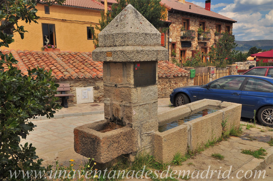 A pocos metros, tenemos una Fuente que nos recuerda a aquellas que, tras finalizar la Guerra Civil, construyó el Servicio Nacional de Regiones Devastadas y Reparaciones en poblaciones vecinas, como Cervera de Buitrago, Puebla de la Sierra, Robregordo o Madarcos.