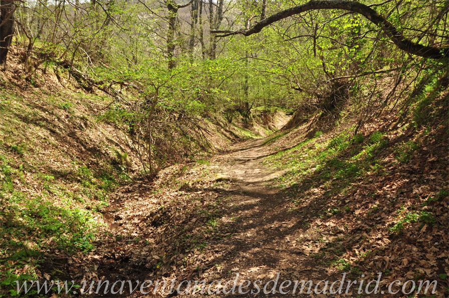 Localización: El camino hacia la Fuente Lugar comienza en la Calle del Corcho, donde ésta gira 90º en dirección Norte; se encuentra señalizado por un cartel. 28191 La Hiruela.