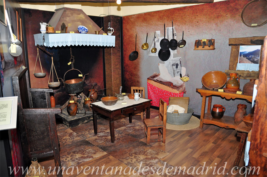 Por otro lado, en la planta alta se instalaría el Museo Etnográfico, un proyecto puesto en marcha gracias, en gran medida, a la colaboración de muchas de las familias de La Hiruela. En él, se ha recreado lo que sería una casa tradicional, de pueblo, pudiendo verse las distintas estancias que la componían.