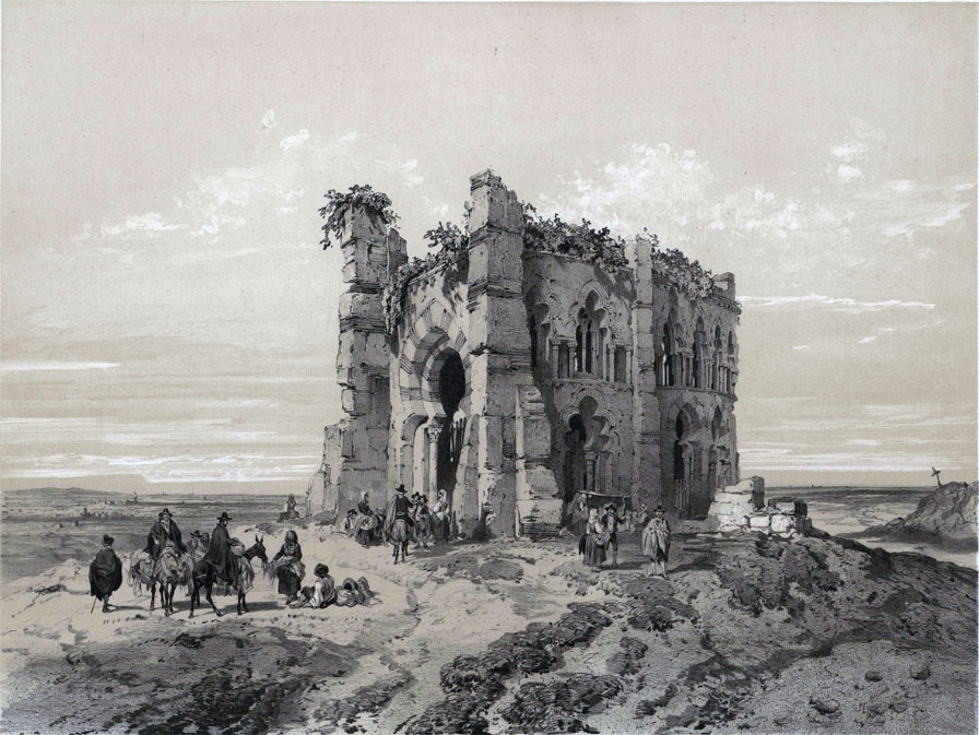 Ábside de la iglesia de los Santos Justo y Pastor (Recorte del grabado realizado por Jenaro Pérez Villaamil en 1842 y que es propiedad de la Biblioteca Nacional).