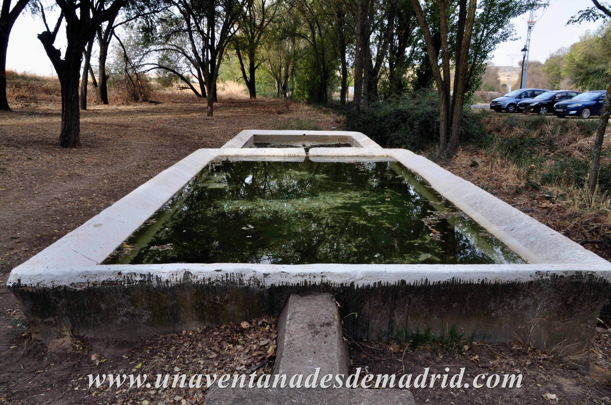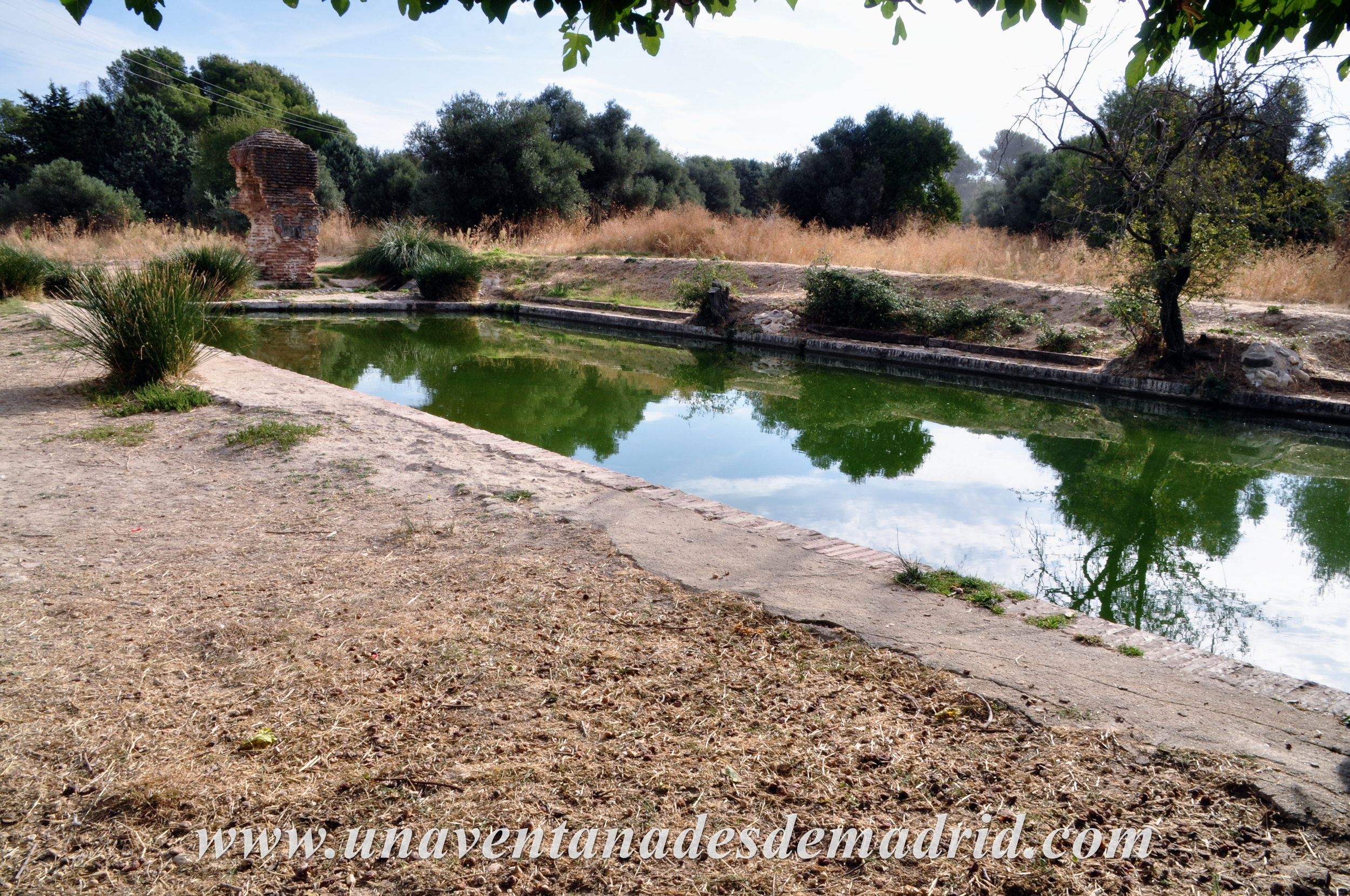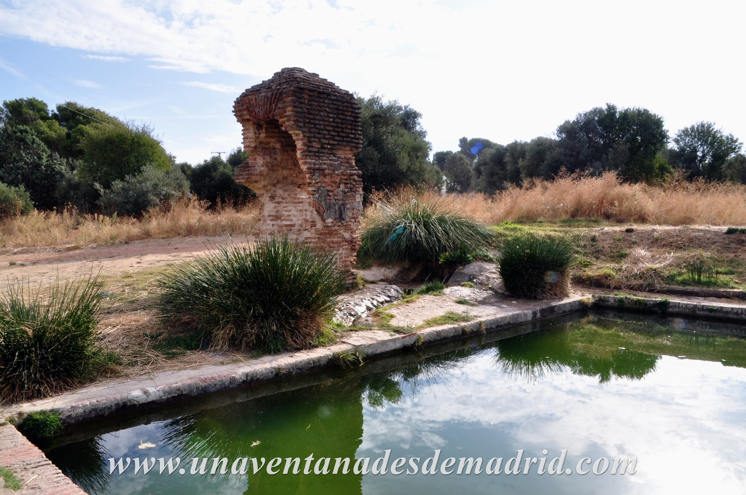 Valdeavero, Estanque alimentado por la fuente de los Dos Caños, situada al fondo, junto a la torre o pinoche, elemento integrante de la red hidráulica del Pinoche de la Cigüeña.