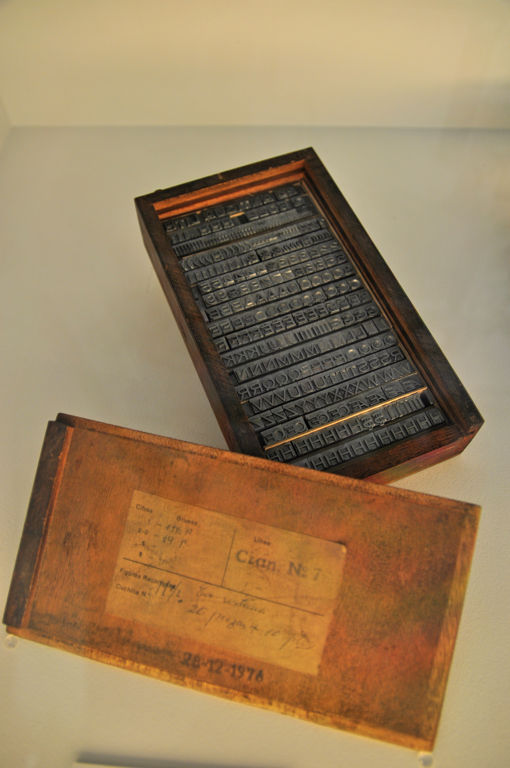 En las primeras vitrinas, podremos ver algunas de estas piezas, así como un molde de fundición con la matriz en la que se hacía un determinado tipo y varios ejemplos de tipos de diferentes tamaños y estilos.