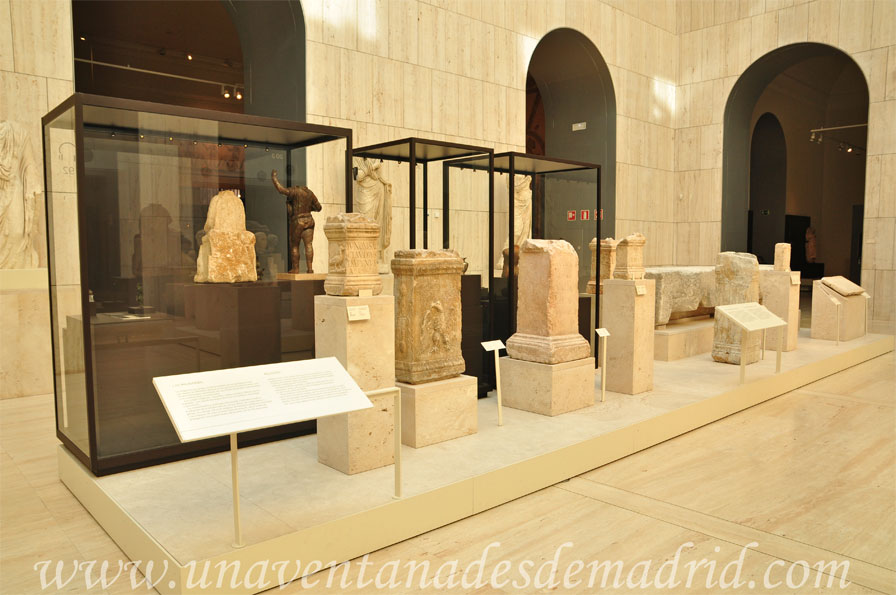 De izquierda a derecha, Aras (altares) dedicadas a las diosas Juno, Venus, Victoria y Ataecina. Todas son del siglo I d. C., excepto la tercera por la izquierda, que es del siglo II d. C.