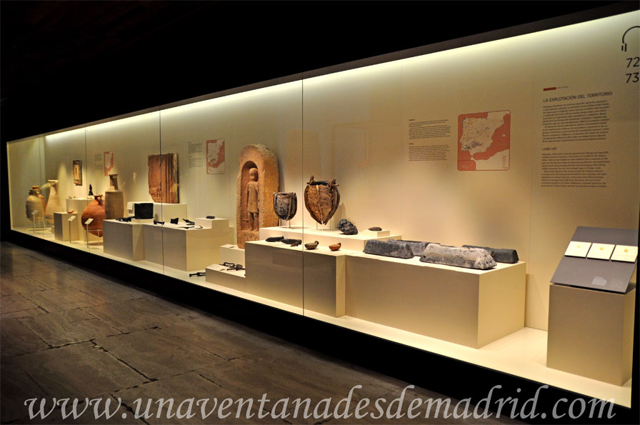 Algunos de los aspectos más importantes de este nuevo sistema económico serán el reparto de tierras a colonos, el monopolio del Estado sobre las explotaciones de minas (Roma convertiría Hispania en el distrito minero más importante de todo el Imperio), la concesión a particulares de su gestión y sus beneficios, la continuidad de la propiedad común típica de las poblaciones indígenas, el aumento de los trabajos de esclavos y la imposición tributaria sobre dichas actividades. Relacionado con todo ello, veremos una bomba hidráulica de bronce del siglo I, así como varios lingotes de plomo, algunas ánforas de vino y de aceite, o distintos utensilios tanto agrícolas como relacionados con la pesca.