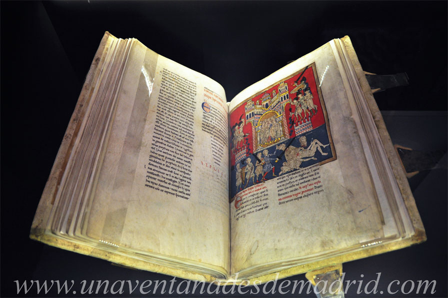 Entre los libros procedentes de monasterios que se hallan expuestos, sobresalen el Beato de San Pedro de Cardeña, que perteneció al monasterio de igual nombre y que está datado de entre los años 1175 y 1185; la Biblia Sacra, del Archivo de la Catedral de Huesca, del siglo XII; y el Códice del Monasterio de las Huelgas (Burgos). Los dos primeros son de estilo románico y este último de estilo gótico.