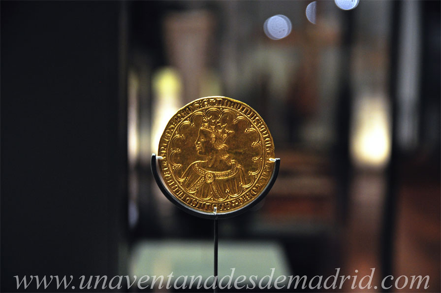 En España, bajo el reinado de los Reyes Católicos se sucedió una serie de acontecimientos de especial significado para la historia del país, como pueden ser la unión dinástica de los reinos de Castilla y Aragón, la conquista del Reino de Granada (último enclave musulmán en la Península Ibérica) y el Descubrimiento de América. Aunque tras esta unión política los dos soberanos mantuvieron una unidad de criterio en política interior y tuvieron los mismos intereses en la exterior, en cada uno de los dos reinos se mantuvieron las instituciones propias de los territorios que formaban parte de cada uno, así como su independencia administrativa y jurídica. Un conjunto de monedas expuesto recuerda la unión de ambos reinos, a pesar de que cada uno siguió acuñando la suya y de que sólo en las de Castilla se hacía mención de los dos monarcas.