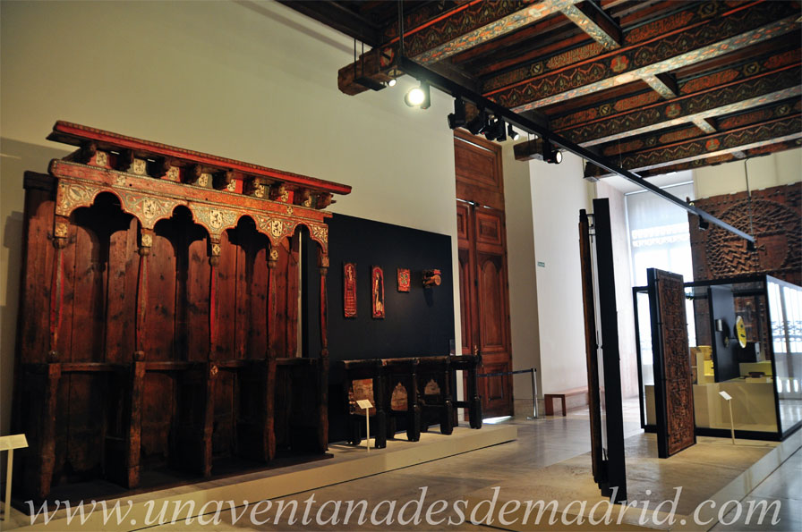 También veremos dos conjuntos de sillerías de coro. El primero, de madera policromada, fechado hacia 1353 y perteneciente al Monasterio de Santa Clara (Astudillo, Palencia), destaca por ser el ejemplo más antiguo en España de sillería alta; estas cuatro sillas formaron parte originariamente de un total de 50. El segundo, también de madera policromada, es de mediados del siglo XIII y procede del Monasterio de Gradefes (León).