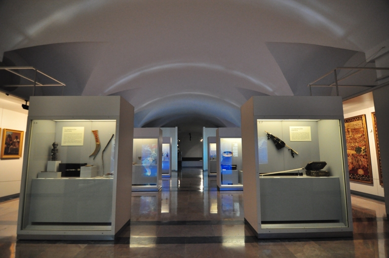 Entre los elementos que podremos ver, además de diferentes instrumentos como vasijas, herramientas de caza, indumentaria como gorros, etc., llamará nuestra atención una vitrina en la que se exponen algunos ejemplares de fósiles de moluscos y varias piezas de animales disecados, práctica muy habitual en los antiguos gabinetes. Asimismo, también merece la pena observar la reproducción de la Piedra del Sol, también conocida como Calendario Azteca. La original se encuentra en México y fue descubierta en el siglo XVIII; con un diámetro de más de 3,5 metros y un peso de casi 25 toneladas, los aztecas colocaban estas piedras en el que era considerado el templo mayor. Ésta en concreto se encontraba sobre la pirámide doble de Tenochtitlan.