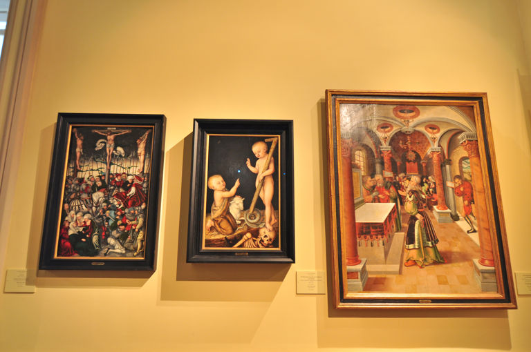 Dentro de este apartado, podremos ver en la sala "El Niño Jesús vencedor del Demonio, la Muerte y el Pecado", cuadro de Lucas Cranach "el Viejo", y un "Calvario" atribuido a Lucas Cranach "el Joven". En la escuela alemana, también se desarrollará el género del retrato, debido especialmente a su demanda por la burguesía, clase donde se enmarcan los principales compradores de arte. Aquí, se muestran algunas tablas que nos sirven de ejemplo, como el "Retrato de Wilhem Lovius", de Johann Hulsman.