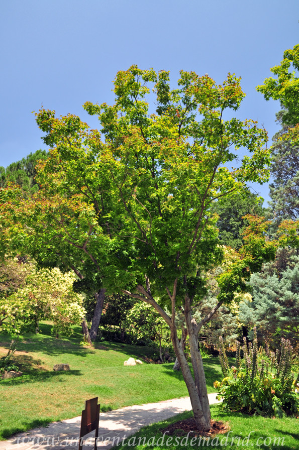 El número 29 es para el Arce japonés (Acer palmatum), también conocido como arce enano, o arce palmado púrpura, por el color de sus hojas en otoño. De origen asiático, es en los bosques húmedos de esas áreas donde crece de forma natural, sobrepasando en muy raras ocasiones los 10 metros de altura. En Japón, existe una tradición denominada Momijigari y que consiste en que los japoneses van a contemplar estos arces cuando ya han tornado por completo en púrpura sus hojas. Además, estos árboles han inspirado gran parte de las obras de arte y los poemas de la nobleza japonesa. En todo El Retiro sólo hay dos ejemplares de arce japonés, siendo, asimismo, una especie que apenas se encuentra en otros jardines de Madrid. Todas las características de estos árboles se pueden leer en su artículo correspondiente siguiendo este enlace, el cual fue publicado dentro del reportaje dedicado a la Senda 3.