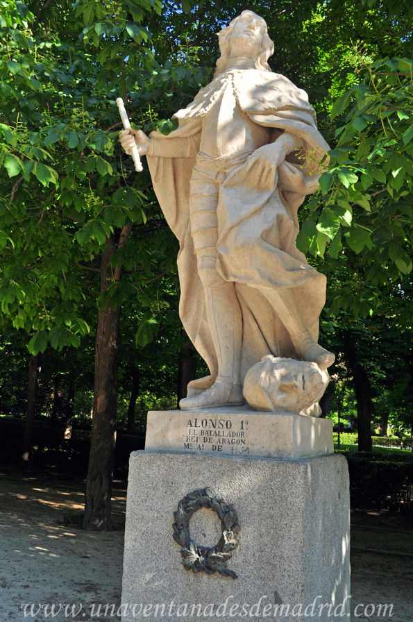 En El Retiro se encuentra, comunicando la Puerta de España con el Paseo de la República de Cuba, el Paseo de la Argentina, más conocido como Paseo de las Estatuas por las trece estatuas de soberanos españoles en él existentes. Éstas formaron parte de las 114 estatuas construidas, entre 1743 y 1748, bajo la dirección de los arquitectos reales Juan Domingo Olivieri (Carrara, Génova, 1706 - Madrid, 1672) y Felipe de Castro (1711 - 1775) durante los reinados de Felipe V (Versalles, 1683 - Madrid, 1746) y Fernando VI (Madrid, 1713 - Villaviciosa de Odón, 1759) destinadas a la ornamentación de la balaustrada superior del Palacio Real, entonces en construcción. Sin embargo, con la llegada al trono en 1759 de Carlos III (Madrid, 1716 - 1788), hay una modificación en los planes y el arquitecto Francisco Sabatini (Palermo, 1722 - Madrid, 1797) se encarga de que las estatuas sean retiradas y guardadas en los sótanos del palacio. Según podemos leer en el libro del arquitecto Ramón Guerra de la Vega "El Palacio Real y la Arquitectura de Felipe V de Borbón, Guía de Madrid y La Granja", dicho cambio estuvo provocado por las quejas manifestadas a Carlos III por su madre y segunda esposa de Felipe V, Isabel de Farnesio (Parma, Italia, 1692 - 1766, Aranjuez), acerca de no haber sido incluida su imagen entre las de las anteriores 114 estatuas, al contrario que la de la primera esposa de Felipe V y madre de Fernando VI, María Luisa Gabriela de Saboya (Turín, Italia, 1688 - Madrid, 1714), y la de la esposa de este último monarca, Bárbara de Braganza (Lisboa, 1711 - Madrid, 1758).