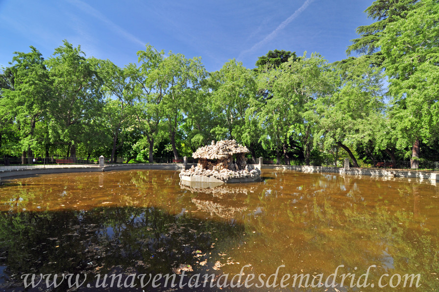 Lo que hoy vemos es un estanque polilobulado formado por ocho semicírculos y un tramo recto corto en cuyo centro se halla una gruta hecha de rocalla sobre un pedestal de la que de su parte superior brota agua a modo de fuente. Una barandilla de hierro lo rodea en todo su perímetro, estando los semicírculos unidos entre sí por un total de diez pilares de piedra que, antiguamente, estuvieron rematados por bolas; cada uno de estos pedestales cuenta en su base, en la parte que mira hacia el estanque, con un mascarón con surtidor.