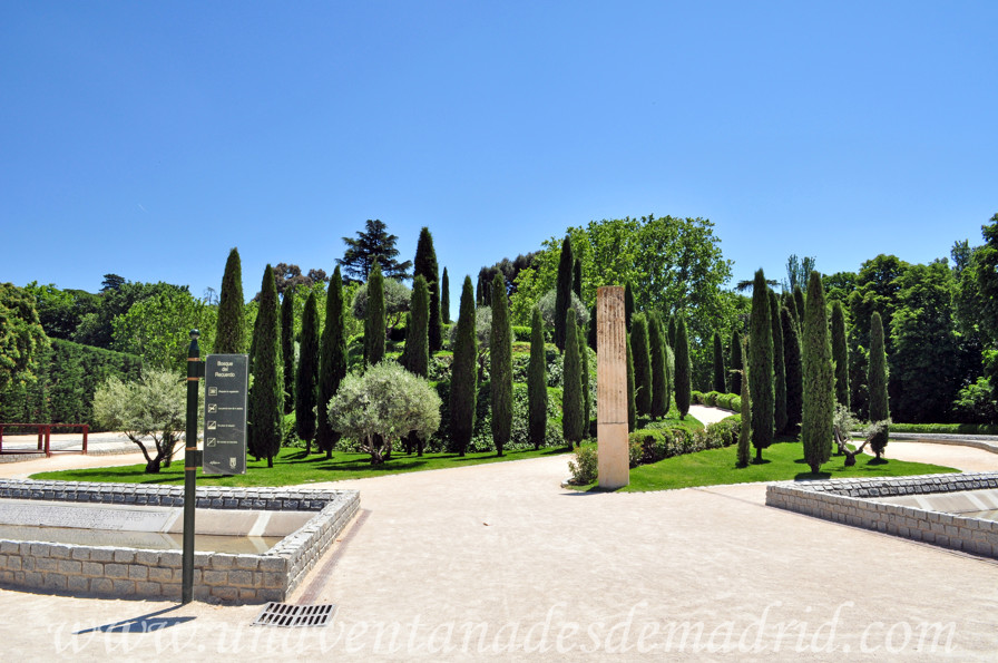 Al año siguiente, el 11 de marzo de 2005 y coincidiendo con el primer aniversario del atentado, se inauguró un jardín en memoria de esas 192 vidas arrebatadas: el Bosque del Recuerdo, también conocido como Bosque de los Ausentes. Con 118 áreas, está compuesto por una colina artificial de terrazas irregulares que van ascendiendo en forma de espiral y en las que se dispone un total de 192 árboles (170 cipreses y 22 olivos), uno por cada uno de los asesinados, traídos desde su primera ubicación original, en el Paseo de la Infanta Isabel, frente a la Estación de Atocha. Éste se halla en el margen derecho de las instalaciones deportivas de la Chopera, iniciándose el ascenso en el punto donde se encuentra instalado un fuste5 de columna acanalado.