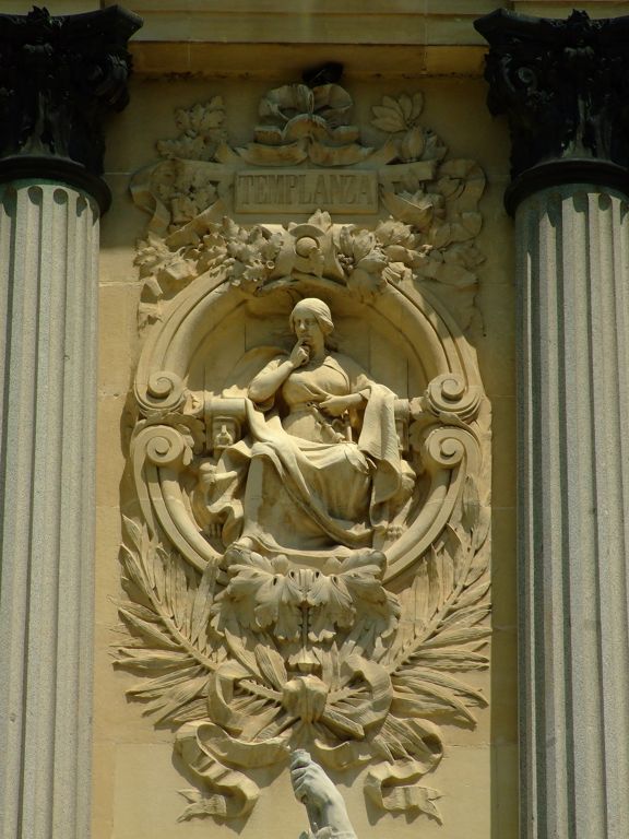 "...se completa el simbolismo, haciendo resaltar en los fondos de los cuatro frentes del mismo otros tantos medallones de alto relieve en que se representan las virtudes cardinales: Prudencia, Justicia, Fortaleza y Templanza, sin las cuales no hay institución política posible para la recta gobernación de los pueblos"