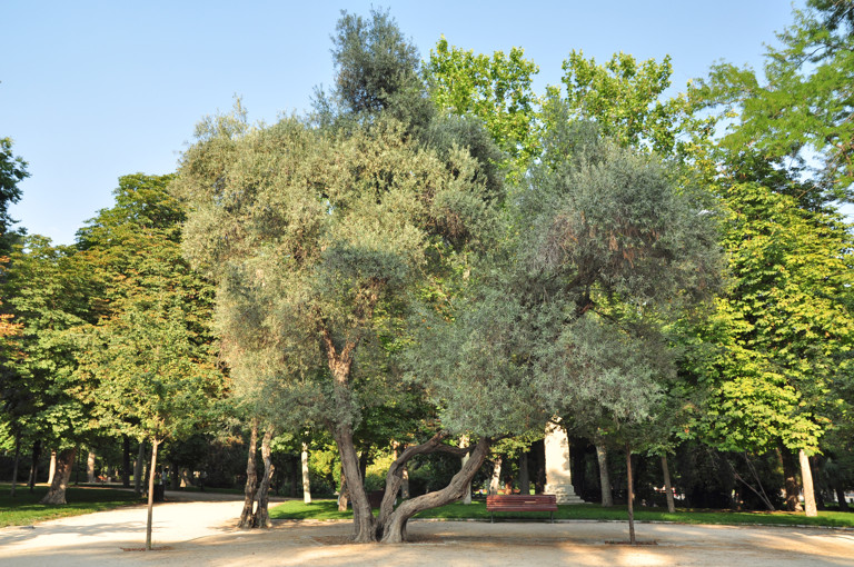 En El Retiro, es posible ver cantidades importantes de olivos en la colina del Bosque del Recuerdo; asimismo, cerca del lugar y al lado de una ría, está el olivo más grande del parque. Además de la zona en la que estamos, también hay olivos en los Jardines de Cecilio Rodríguez y en la Montaña Artificial.