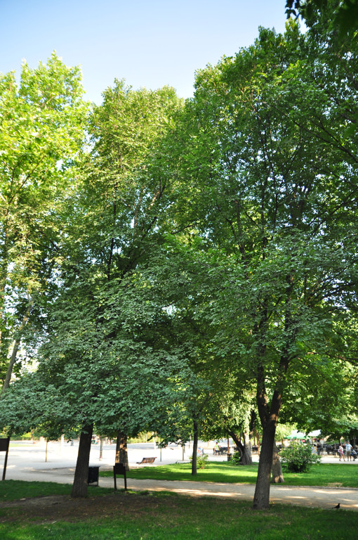 La frondosidad de su copa ha hecho que, desde antiguo, los olmos hayan sido fáciles de encontrar dando sombra en las plazas de los pueblos. Sin embargo, la grafiosis4 ha causado estragos en ellos, reduciendo notablemente su presencia en el parque y en Madrid, en general.