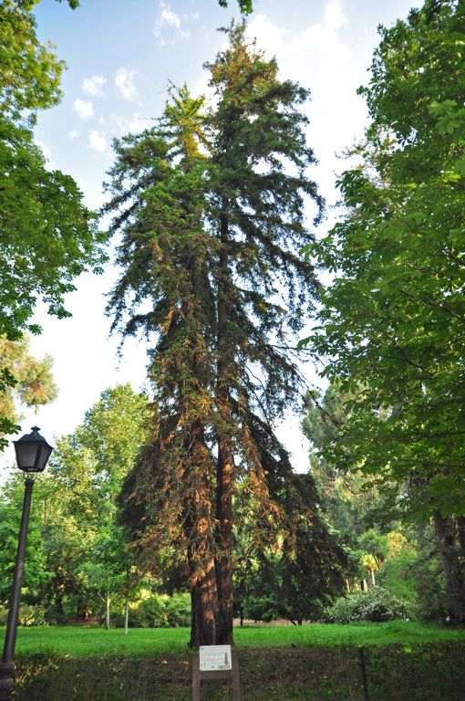 En el lugar en el que nos encontramos, tenemos tres secuoyas rojas. A su vez, en el parque podemos localizar más ejemplares de estos árboles, como los ubicados entre el Palacio de Cristal y el Palacio de Velázquez, y en las inmediaciones de la estatua dedicada a Ramón y Cajal.