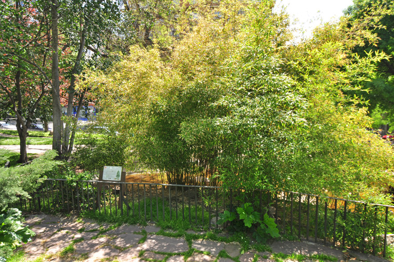 Y llegaremos al Jardín de Vivaces, también llamado Jardín de las Plantas Vivaces y Alpinas, cuya apariencia fue configurada a lo largo de la segunda mitad del siglo XX y que, anteriormente, había sido utilizado como lugar para almacenar maquinaria, mantillo2 y restos de podas. Así, se creó un espacio de caminos sinuosos en el que abundan elementos naturales propios de los jardines japoneses, como las piedras, la madera y las rocas, y en el que veremos árboles poco frecuentes no sólo en El Retiro, sino también en Madrid: el arce japonés, el abedul, el naranjo de los Osage, el podocarpo, la secuoya gigante, el haya y la araucaria.