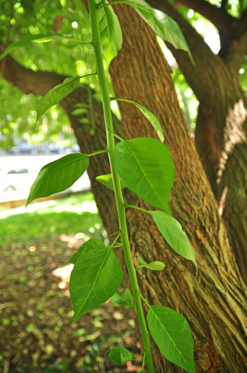 Dirigimos nuestros pasos de nuevo al entorno de la Rosaleda, donde nos detendremos en el Almez (36) (Celtis australis), también llamado Almecino/a, Latonero, Lodoño, Lodón, Lidón, o Lironero, un árbol que crece de manera natural en la región mediterránea.