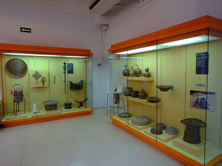 La cultura material se relaciona con la forma de vida, las costumbres y las creencias, dependiendo todo ello de la zona geográfica y cultural. De este modo, los objetos se realizan con una función concreta, aunque no única, ya que en la mayoría de las veces pueden ser utilizados para varios cometidos. En esta sala, podremos ver objetos cuya procedencia es, principalmente, de zonas donde hubo presencia española, como es el caso de Marruecos, Sáhara Occidental y Guinea Ecuatorial, unidos a aquellos que fueron traídos en diversas expediciones científicas llevadas a cabo entre finales del siglo XIX y mediados del XX. Todos ellos los iremos viendo divididos en cuatro subdivisiones temáticas.