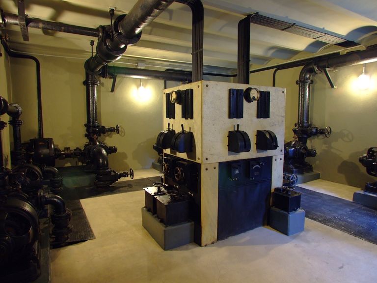 Desde la planta sótano se accede a un cuarto situado debajo de la parte Norte del edificio de oficinas en el que están instaladas ocho bombas centrífugas de la casa Sulzer; éstas se unían a los motores de corriente continua para gestionar la refrigeración de los motores diesel encargándose además del trasvase del combustible en la central.