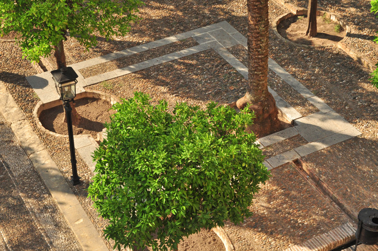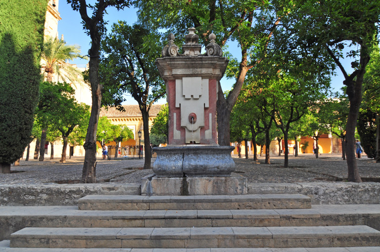 El Patio de los Naranjos es un apacible jardín que nos permite descansar, relajarnos, concentrarnos, dejarnos atrapar por nuestros pensamientos. Está dividido en tres cuadros10, con una fuente de mármol en cada uno de ellos y donde se mezclan naranjos, cipreses y palmeras. Además de estos surtidores, hay otros dos que vemos a continuación con más detenimiento.