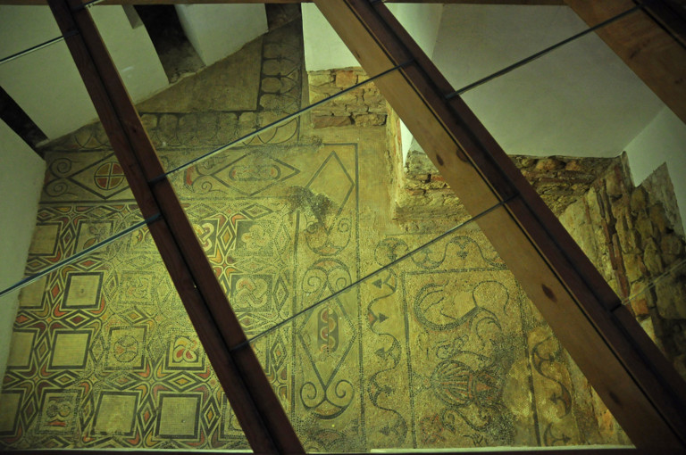Igualmente, se hallaron capiteles, mosaicos33 y pilares, algunos de ellos expuestos en el Museo de San Vicente, situado dentro de la Catedral-Mezquita, en la parte correspondiente a la ampliación de Al-Hakam II. Asimismo, parte del pavimento original, encontrado durante dichas excavaciones, se ha dejado al descubierto y se puede ver a través de un hueco localizado entre las naves dos y tres, a la altura de la Capilla de Nuestra Señora de las Nieves y San Vicente Mártir.