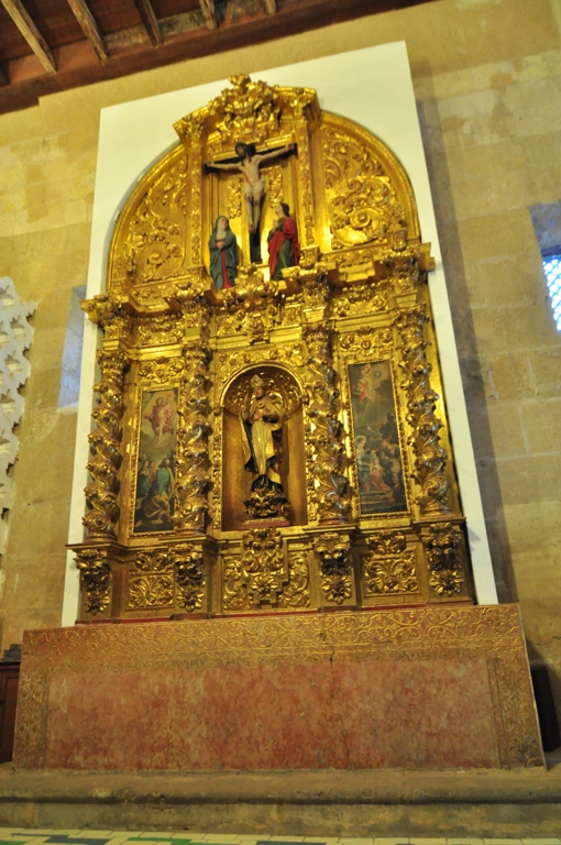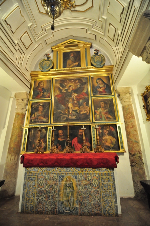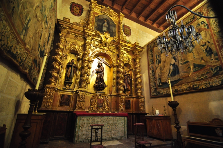 También podremos ver los dos bellos tapices que cuelgan de las paredes laterales de la capilla. Pero sin duda, uno de los elementos más significativos es el altar, cuyo frontal está revestido con azulejos del siglo XV, lo cual nos indica que pertenece a la antigua fundación.