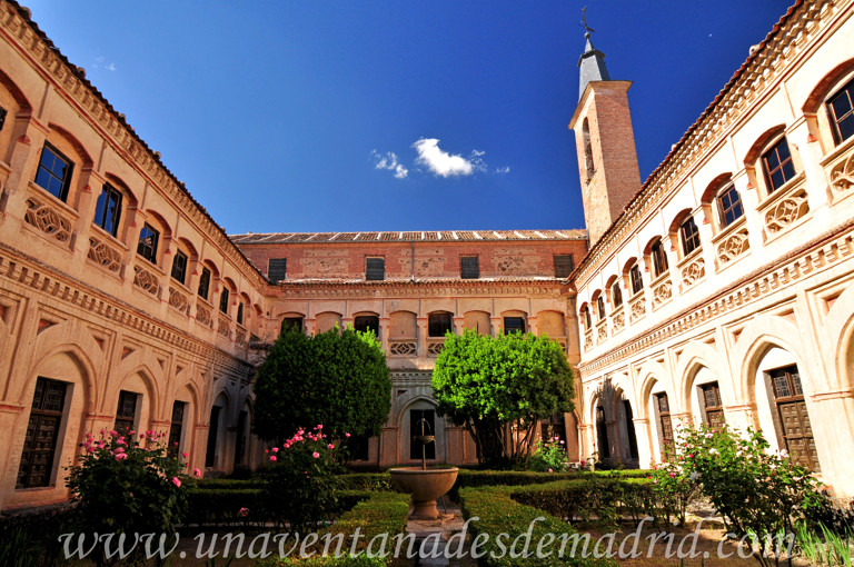 Aquí, el público general puede acceder al Claustro de la Vicaría, pues tras previa petición al personal de la Hospedería, éste permite su visita sin mayor inconveniente. Se trata de un espacio de planta rectangular, porticado en su parte baja con seis arcos carpaneles en los lados mayores y cuatro en los menores que se apoyan sobre columnas ochavadas de piedra caliza y basa de granito, y en el que se abre una galería en el piso superior. En ocasiones, se ha querido ver en el trabajo la mano de Juan Guas, sin embargo, no hay evidencias que puedan sustentar esta hipótesis.