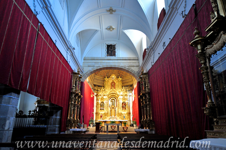 Un arco carpanel de piedra del siglo XVI sostenido sobre ménsulas une la Capilla Mayor con la nave de la Iglesia; bajo este arco hubo en tiempos una reja de madera realizada a finales del siglo XVI, hoy desaparecida. Cabe mencionar aquí un documento del año 1488 guardado en el archivo del monasterio que cita Alberto García Gil y por el cual las monjas quedaban obligadas a "no permitir enterrar en la Capilla Mayor a persona alguna que no sea el Rey o su familia". Si bien los muros de esta Capilla Mayor están hechos de tapial30, las cornisas son de ladrillo, como las esquinas, estando revocadas por completo, de tal modo que aún se conservan restos de la pintura original; sobre los modillones31 se dispone un pequeño caveto34 rematado por una platabanda36 sobre la cual hay sendas hiladas de teja en las que se alternan las vidriadas en blanco.