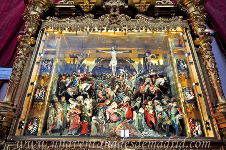Tres son los retablos que podremos ver en la nave del templo, siendo uno de ellos el que sobresale por todos: el llamado Retablo de la Pasión, obra de arte flamenca que, probablemente, pudo ser importada de Bruselas, Brujas, o Tournai, todas ellas ciudades belgas. En él, 135 pequeñas tallas de madera policromada y dorada representan las escenas de la Pasión de Cristo, destacando en el centro, al pie de la cruz, la figura de la Virgen, que aparece sostenida en un dramático gesto de dolor.