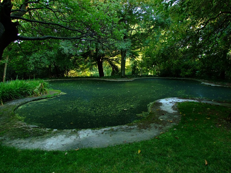 Vamos ahora a recorrer en sentido opuesto el mismo camino que nos llevó hasta el anterior Templete y tomemos el desvío que mencionábamos antes. Ahora lo encontraremos a nuestra izquierda, lo seguimos hasta que el camino nuevamente se divide en dos, dejamos el camino de la derecha para El Capricho (y II) y recorremos el de la izquierda hasta llegar a un espacio no demasiado conocido ni transitado: Estanque de los Cisnes. Aunque los cisnes que le dan nombre son normalmente inexistentes, estamos en uno de los lugares más ensoñadores del recinto. Dependiendo de la época del año en que lo visitemos y de la persona que nos acompañe, nos puede provocar muy diferentes sensaciones el simple hecho de sentarnos frente al agua y dejarnos llevar por la imaginación.