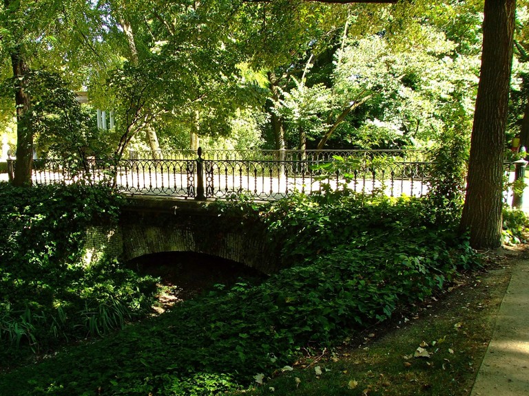 Dejamos atrás la anterior fuente y ya sólo nos queda atravesar el arroyo que nos separa de la Plaza de los Emperadores por uno de los dos puentes con barandilla de hierro en los que desembocan cada uno de los dos caminos paralelos mencionados anteriormente.