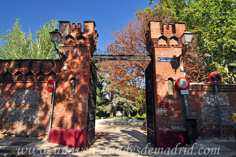 Comencemos nuestro recorrido por el interior del parque, accediendo a él por su Entrada Principal, situada en la Calle Enrique D'Almonte. Tanto ésta como la tapia del parque sobre la que se abre están construidas en ladrillo, en un estilo de gran semejanza al neomudéjar.