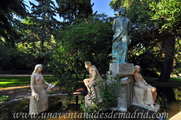 La anterior pista finaliza en otra vía más ancha que bordea la vegetación que envuelve la isla que forma la ría chica y nos lleva en una ruta Este, Norte, Noroeste hasta el Monumento a Gustavo Adolfo Bécquer (Sevilla, 1836 - Madrid, 1870), poeta y narrador tardorromántico y autor de las conocidas "Rimas y Leyendas". El escultor Santiago de Santiago (Ávila, 1925) fue el artista encargado de realizarlo y a su inauguración, el 8 de octubre de 1974, además del alcalde madrileño, asistió la sobrina-nieta del poeta sevillano.