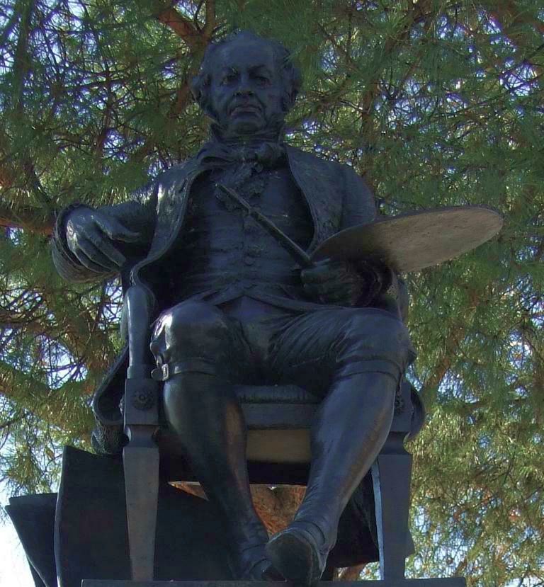 Estatua de Goya, frente a la ermita-museo de San Antonio de la Florida. Goya fue designado para decorar la ermita, trabajo que le ocupó seis meses, de agosto a diciembre de 1798. La parte mas espectacular de sus pinturas es la cúpula. Ahí está representado el milagro de San Antonio de Padua que, transportado por los ángeles a Lisboa, la gracia divina hace que un difunto conteste a las preguntas del juez para confirmar la inocencia del padre de San Antonio. Esta obra tiene 6 metros de diámetro. En ella se ven las figuras del difunto, los padres del santo y el propio San Antonio, apreciándose el paisaje y consiguiendo la ilusión de estar a cielo abierto. Aquí, el pueblo de Madrid (majas, chisperos, caballeros embozados) está presente apoyándose en la barandilla de la base de la cúpula, logrando un gran realismo. El ayudante de Goya en la realización de estos frescos fue su discípulo Asensio Juliá.